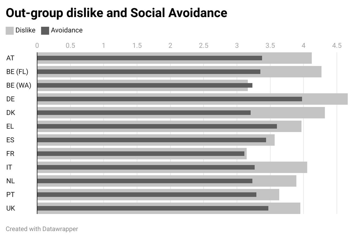 Figure 1: aversion pour les groupes extérieurs et évitement social dans les différents pays (scores moyens).